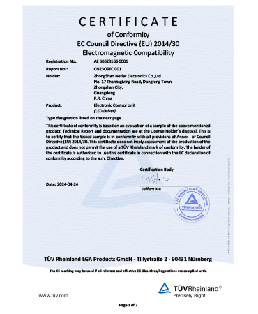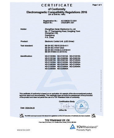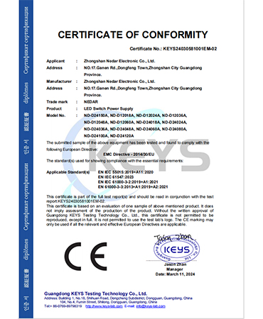 • 櫥柜燈電源CE證書